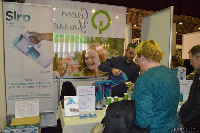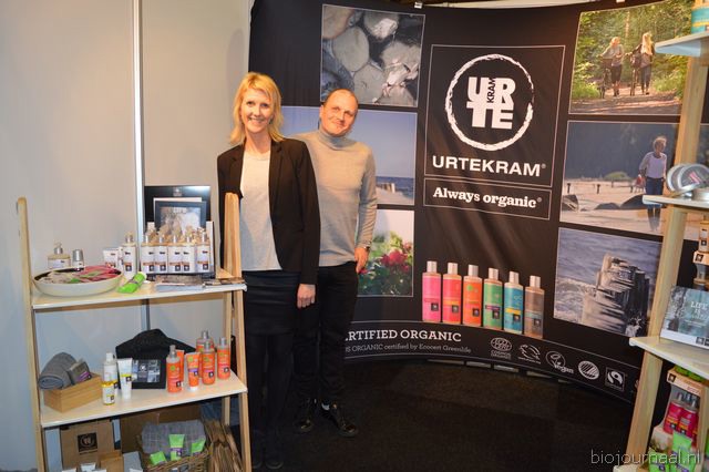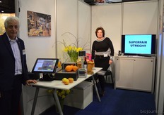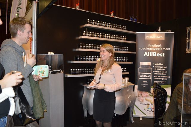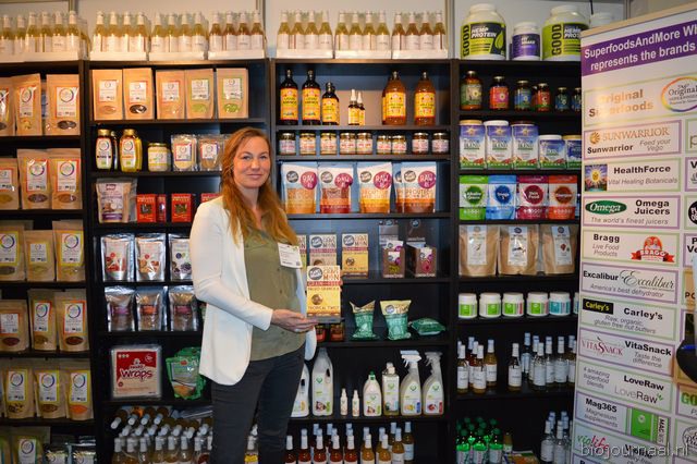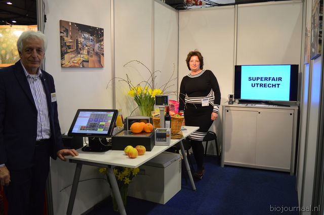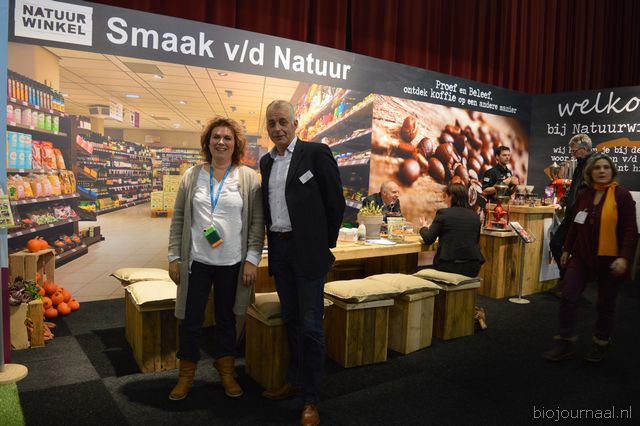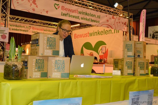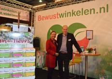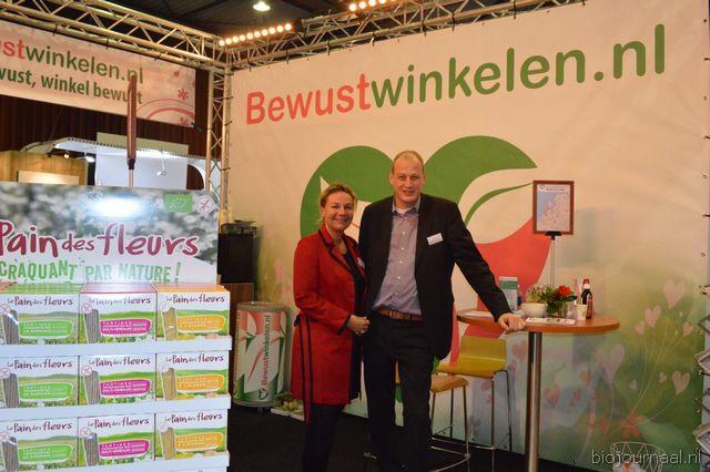 Carla van der Voorn en Raymond Luteijn van Holland Pharma. Op de stand stond de webwinkel bewustwinkelen.nl centraal.