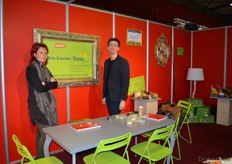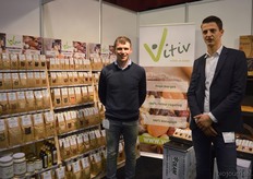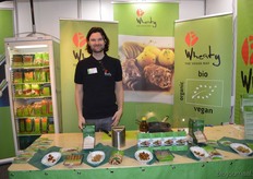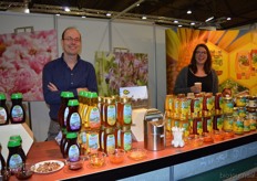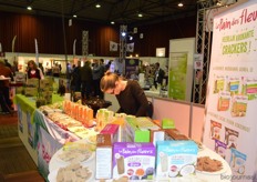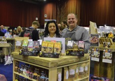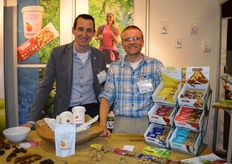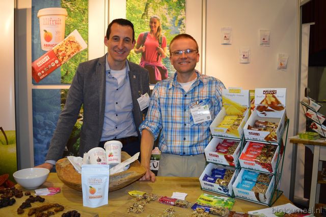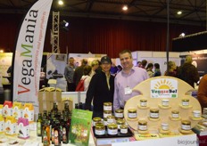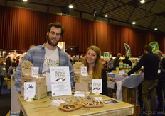 Majorie Wouden van Veggiemania Trading Company en Pascal Depuydt van Veggiebel deelden de stand. Majorie presenteerde de gedroogde vruchtensnacks onder het Puffins label en bio-oliën en vinaigrettes van Cauvin.