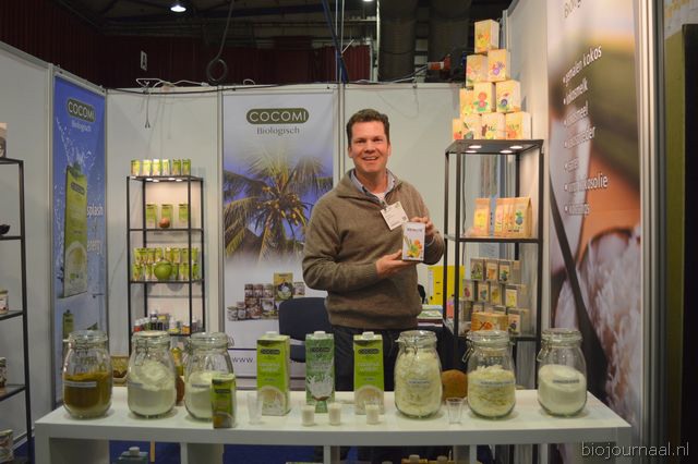 "Ben Neuschawander laat bij MEM Benelux een product uit de nieuwe biologische theelijn van Renuté zien. Ben: "Hier krijgen we goede reacties op." Bij MEM Benelux zijn ook de biologische kokosproducten van COCOMI verkrijgbaar."