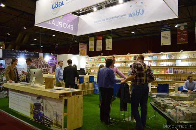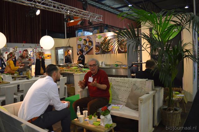 In de stand van Udea/Ekoplaza was weer volop ruimte om met elkaar in gesprek te gaan. De stand was dit keer wat meer centraal op de beursvloer te vinden.