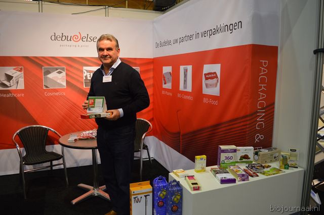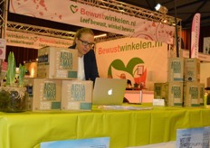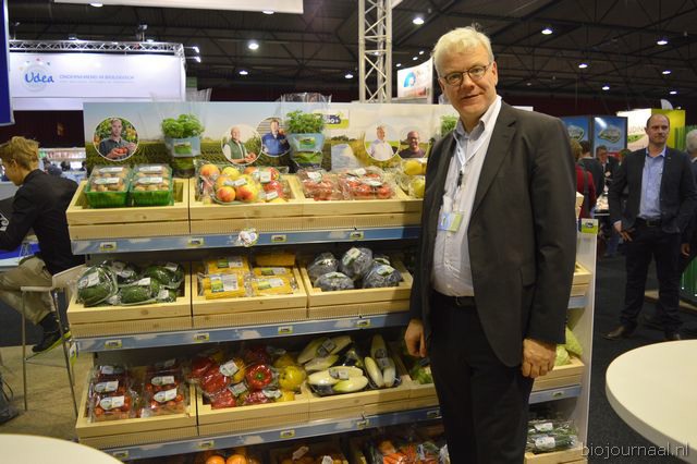 Henk Gerbers bij de AGF-producten van de Stichting Merkartikel Bio+.