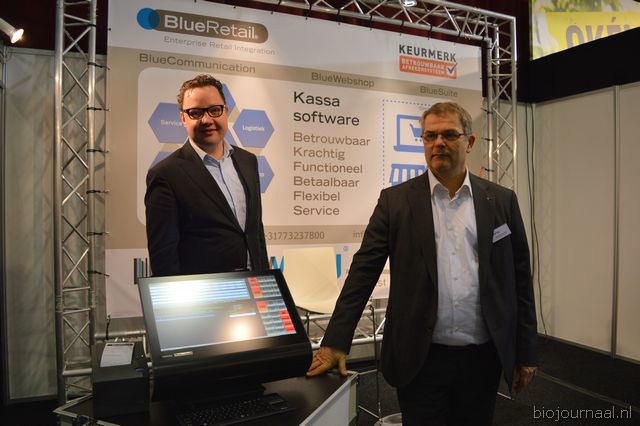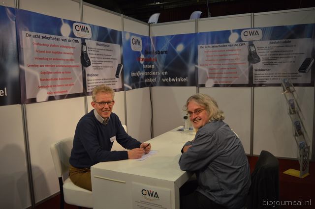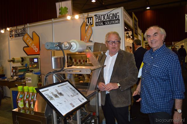 Henri Verstappen en Herman Kemper vertegenwoordigden Bio+-licentiehouder Kemper Kip op de beurs.