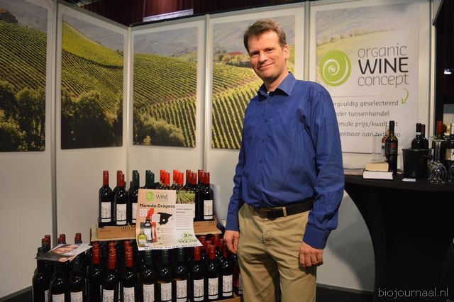 Ramon van Huffelen van Natrada stond weer met het Organic Wine Concept op de beurs. Winkeliers kunnen 'partner' worden van het Organic Wine Concept en hiermee krijgen ze ondersteuning bij de invulling van het wijnschap.