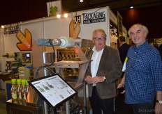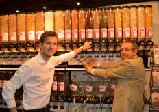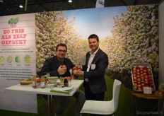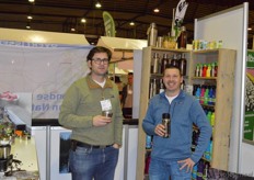 Nicky Van Bastelaere (De Drie Wilgen) en Hans Zaagman (Excellent Food Products) poseren bij de sappen...