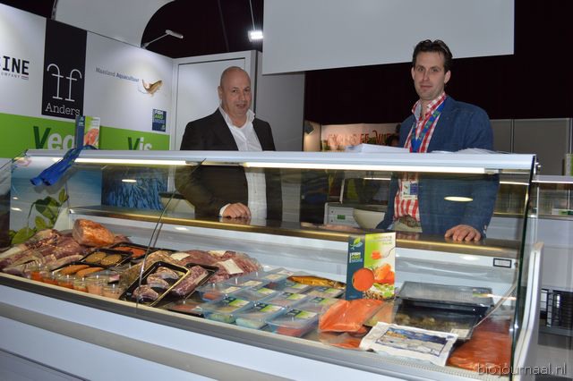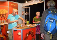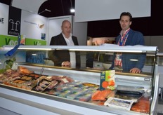 Anton Bal (Top Quisine) en Jurgen van Bakel (Maasland Aqua Cultuur) delen een stand; een combinatie van vlees en vis.