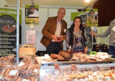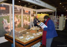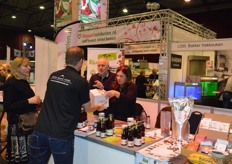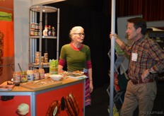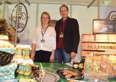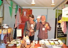 Marjanne en Chris Borren van De Lankerenhof brachten veel producten mee. Nieuw is de paté van 100% kippenvlees die eind 2015 werd gepresenteerd.