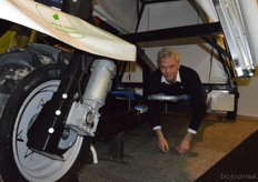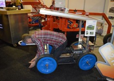 Paul Andela van Andela Techniek & Innovaties demonstreert de ligwieder. De volledig elektrische machine is voorzien van zonnepanelen en biedt plaats aan 8 wieders.