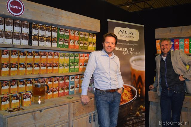 Rob van Dijck en Frank Jansen van De Eng BV presenteerden de nieuwe Turmeric Tea van Numi.