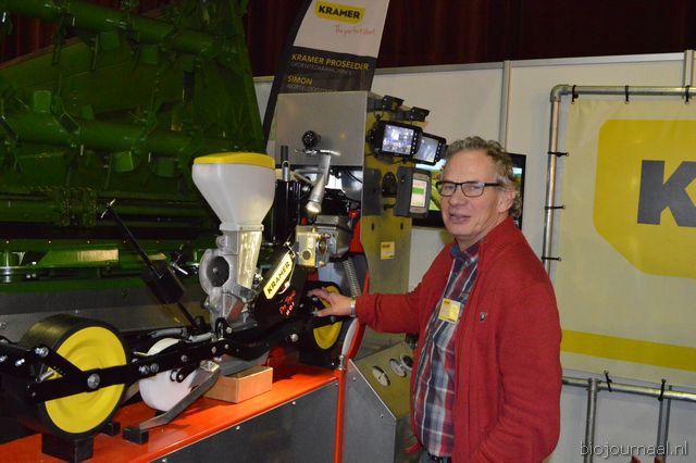 "Ton Kramer van Kramer vertelt over de elektrische groentezaaier. De groentezaaier is een stap in precisielandbouw die ook voor biologische telers interessant kan zijn. "De machine zaait op gelijke afstand en kan op het perceel de afstand aanpassen aan de bodemkwaliteit."