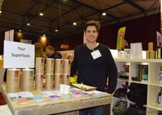 Michael Kuech presenteert YourSuperfoods op het Ondernemersplein. Nieuw is de Forever Beautiful, een antioxidant.