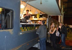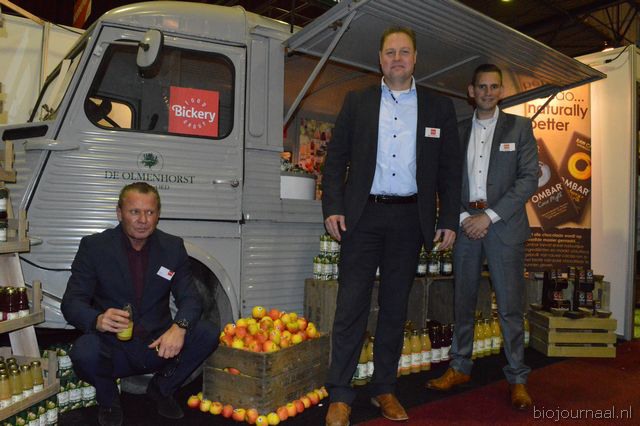 Remko Kempers, Bas Berenschot en Olaf Peters van Bickery Foods Group namen de bekende bus van De Olmenhof mee. Maar maakten ook ruimte voor Ombar chocolade.