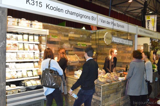 Paddenstoelen (Koolen Champignons) en sprouts (Van der Plas Sprouts), een goede combi die op veel interesse van de bezoekers kon rekenen.