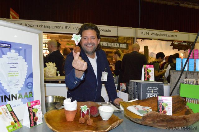 Jonathan Karpathios liet bezoekers proeven van zijn laatste innovatie: de bieterbal.
