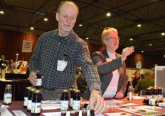 Edo Biewinga en Maria Buitenkamp (PureBlu) lieten bezoekers proeven van de blauwebessensap; een zoetere en een friszure variant.