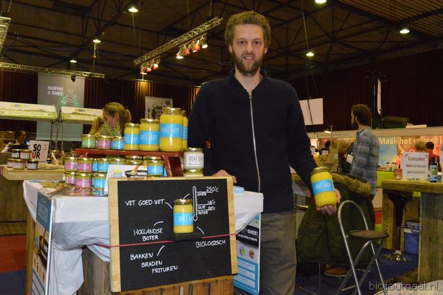 Ard van Gaalen van BioStee dit keer niet als bezoeker en bio-akkerbouwer aanwezig op de Bio-beurs, maar als exposant en biologische kaasproducent. Er kan veel gebeuren in een jaar.