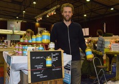 Bryan Boelders met één van de producten van Baltussen Konservenfabriek.