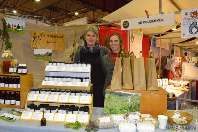 Linda Ekelschot en Marlies Engels van Polderkol brachten een ruim assortiment kruiden mee naar de beurs.