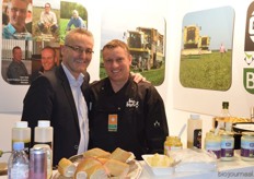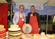 Jan Tenge en Gerard Lintjes presenteren de kazen van Kaasboerderij Ravenswaard. Goed nieuws: de oude kaas (1 jaar en 9 maanden gerijpt) is sinds kort weer beschikbaar.