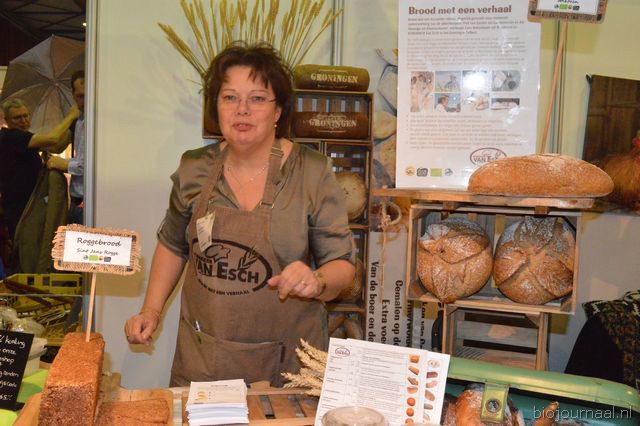 "Marjan Slaghouwer van Biobakker Van Esch. De bakkerij werkt al twee jaar uitsluitend met oergranen uit Groningen wat "een uniek broodje" oplevert."