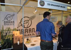 Gert Noordhoff van De Graanrepubliek.nl laat bezoekers proeven van zwartehaverthee, een thee waarin je de akker proeft. Het bedrijf is gespecialiseerd in oergranen.