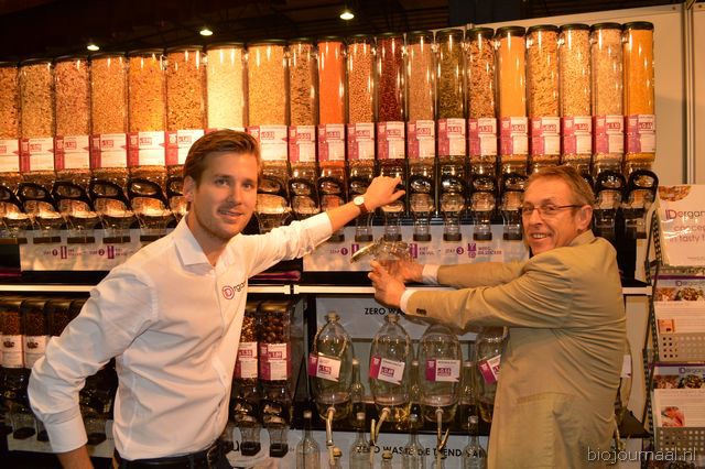 Rob van Santen en Jetse Schokker van IDorganics spelen met deze wand in op de zero waste trend.