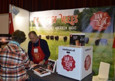 Anthony van Es presenteert de vleespakketten van Van Teun. De runderen lopen in het wild in Tsjechië op 300 hectare. In november begon het bedrijf.