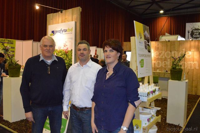 Wim van Garderen (Pireko, Lelystad), Jonas Klinkert (PRP Technologies, Benelux) en Lizette Bergsma (Profytodsd). De bedrijven spannen zich in om de weerbaarheid van planten te versterken en de vruchtbaarheid van de bodem te bevorderen.