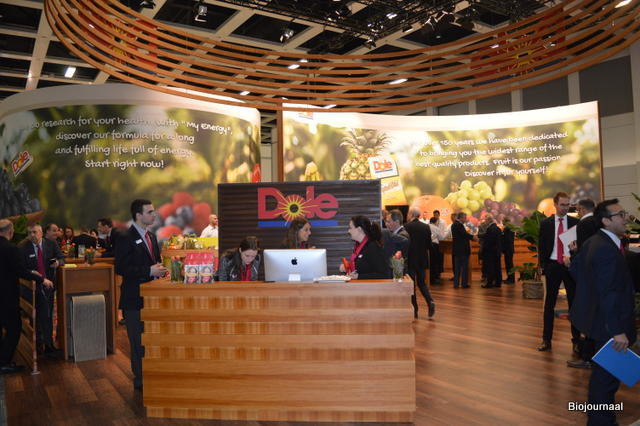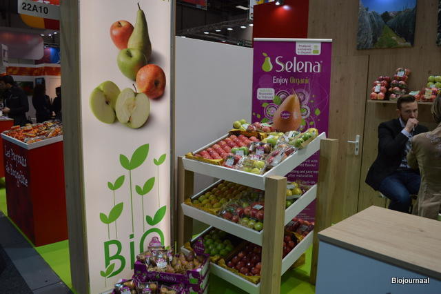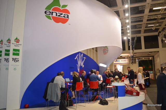 Op verzoek van Melisa Frenchelli zijn de flessen wijn buiten beeld gelaten en staat het biologische fruit centraal in de stand van Axarfruit.