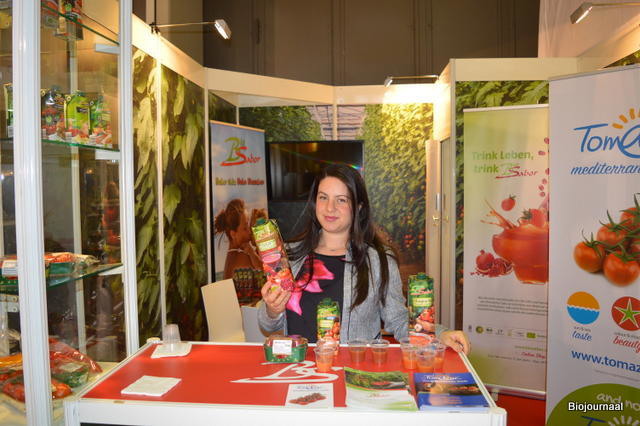 Net als veel biologische bedrijven is ook het Spaanse BioSabor in handen van een familie. Het bedrijf specialiseert zich in tomaten en Garcia toont een van de nieuwste producten: Gazpacho sap.