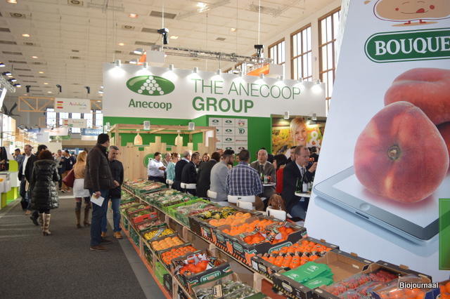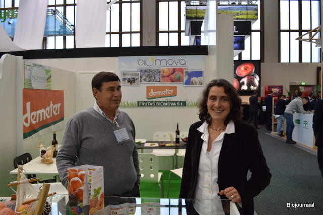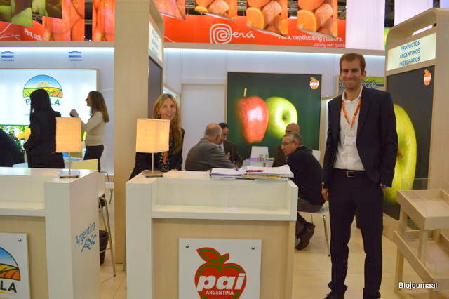 Biomova, hier gepresenteerd door Emilio Moreno Vaquera en de tolk, verhandelt vanuit Spanje biologisch steenfruit.
