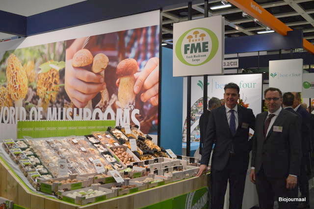FME levert bio-boleten uit eigen kwekerij. Arie Verburg en Marc van der Zandt verwachten in de toekomst een breder assortiment en ziet dat steeds meer specialisten zich op de bio-teelt richten.