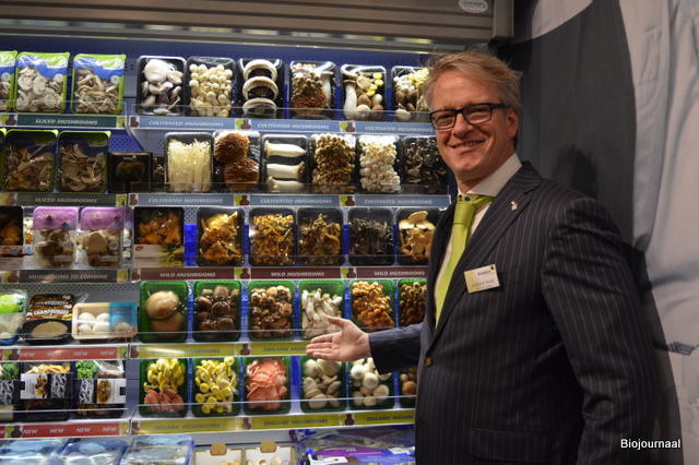 Edward Vonk presenteert het biologische assortiment van Banken Champignons.