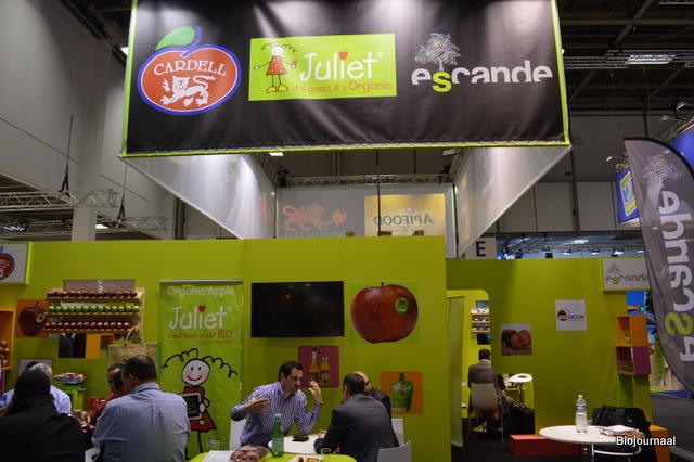 Nicolas Lambert van het Franse Perlim laat de nieuwste telgen zien in het bio-assortiment: Opalappelen en de sap waar steeds meer vraag naar is.