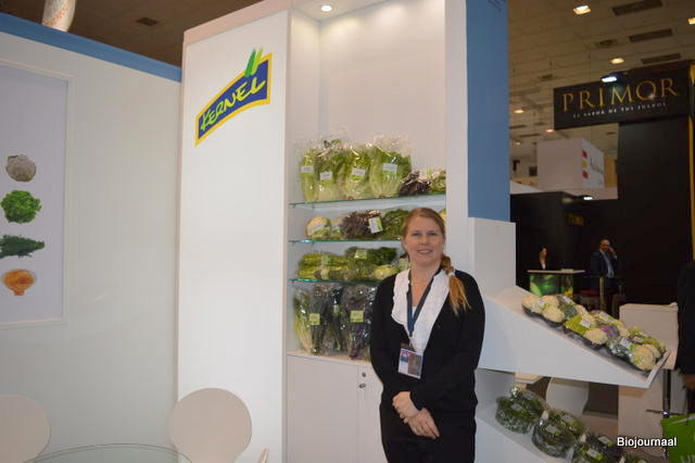 De stand van Kernel toont veel biologische boerenkool. Volgens Linda Jaern een product waar steeds meer vraag naar komt zowel in de horeca als in de retail.