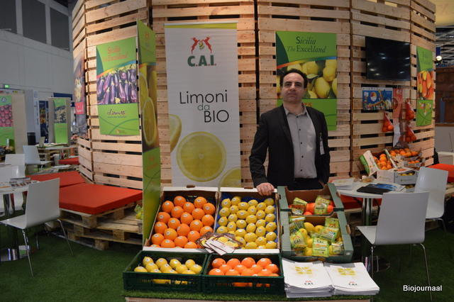 Samuele Livornese van CAI heeft een kleine stand maar is naar eigen zeggen groots in de afzet van citrus.