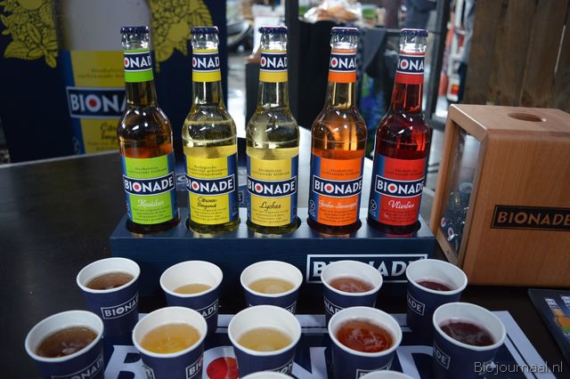 Bij haar kon je proeven van de nieuwste smaak van Bionade: Citroen-Bergamot (tweede vanaf links).