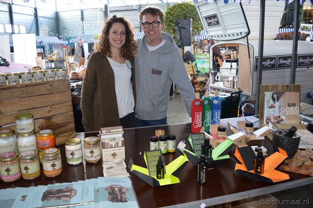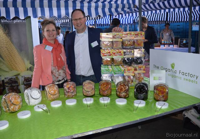 Meeke Janssens en Fred van Tienen met de bio-snoepjes van The Organic Factory.