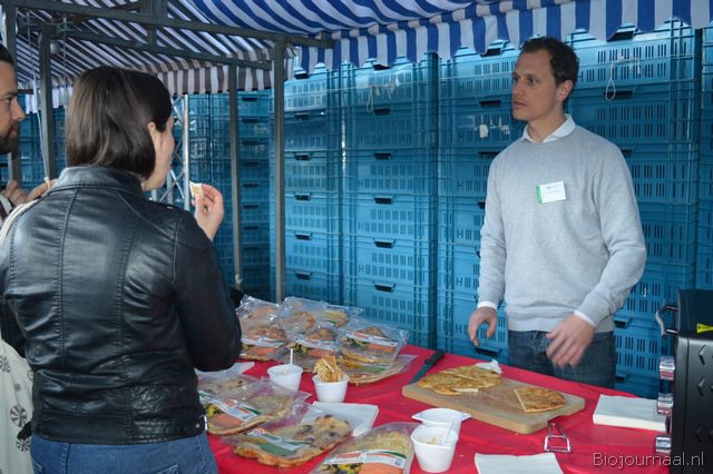 Barend Cox stond namens Mont Blanc Foods en Bastiaansen Bio Kaas op de Open Dag. De producten van beide bedrijven combineren uitstekend.