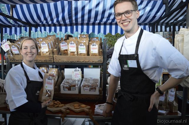 "Sophie de Brock en Bas van den Hout kregen heel veel positieve reacties op de biologische koekjes van De Guijt. Bas: "Ze zijn ook enthousiast over onze suikervrije koekjes."