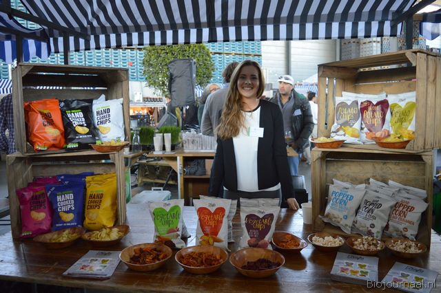 Nynke Kokmeijer stond namens FZ Organic Food op de Open Dag. Ze had de chips van Trafo bij.