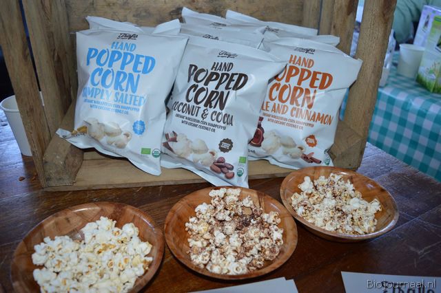 Ook presenteerde ze de nieuwe aanwinst: biologische popcorn, gebakken in kokosolie.