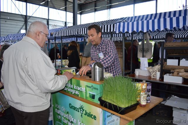 Nick Sluijter met het tarwegrassap van Grass2Juice.