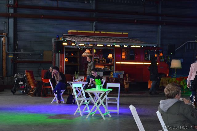 De bezoekers konden aan de andere kant van het DKW-magazijn genieten van een hapje en een drankje.