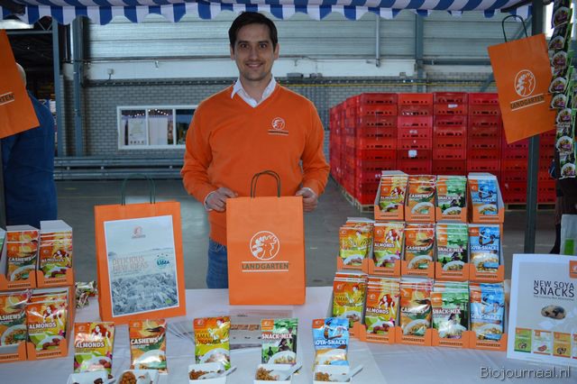 "Christopher Gollowitzer stond namens het Oostenrijkse Landgarten op de Open Dag. "Onze producten zijn sinds vorig jaar via Udea verkrijgbaar. Nieuw is onze Tamari Soy-snack."