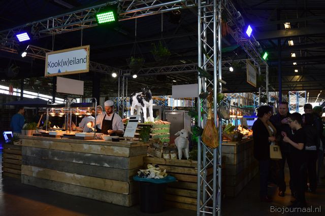 Bij het Kook(w)eiland kon men onder meer genieten van biologische burgers (ook een vegavariant) en falafel.