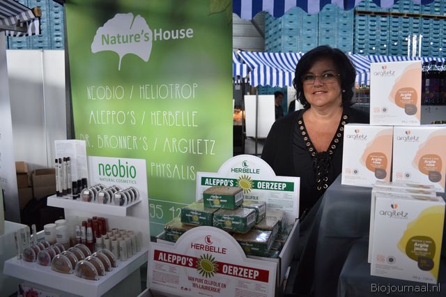 Anja Besselsen met de natuurlijke verzorgingsproducten van Nature's House.