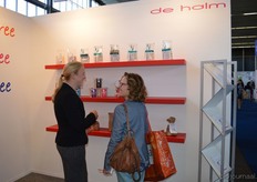 Irma Steenbakkers vertelt een bezoeker wat meer over de producten van De Halm.