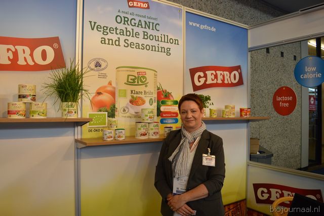 Het Duitse familiebedrijf Gefro presenteerde haar bio-lijn met groentenbouillons en kruidenmixen en sauzen. Sonja Kiechle vertelde dat het bedrijf graag ook de Nederlandse markt wil gaan beleveren.