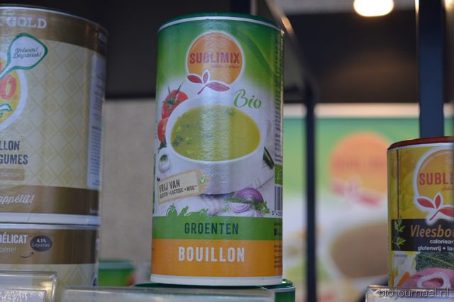 Het Nederlandse bedrijf Noble International presenteerde de Sublimix biologische groentebouillon op de Free From Food Expo. De vlees- en kipvariant komt er aan.