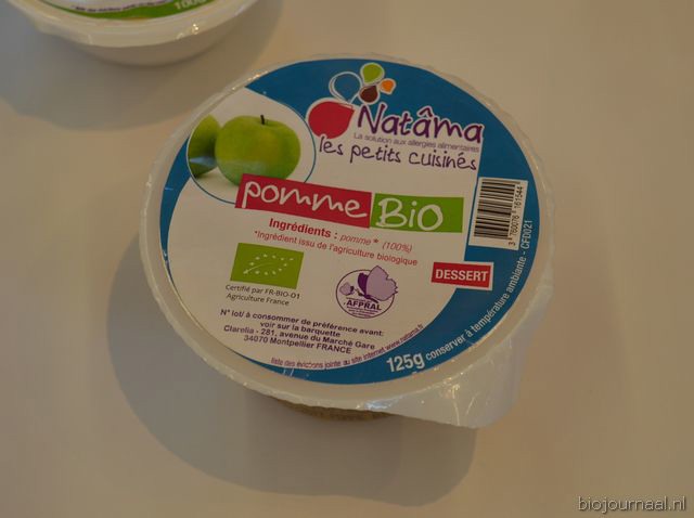 Het Franse merk Natâma bracht deze bio-appelmoes mee naar de beurs. Ze werken toe naar een complete biologisch lijn.